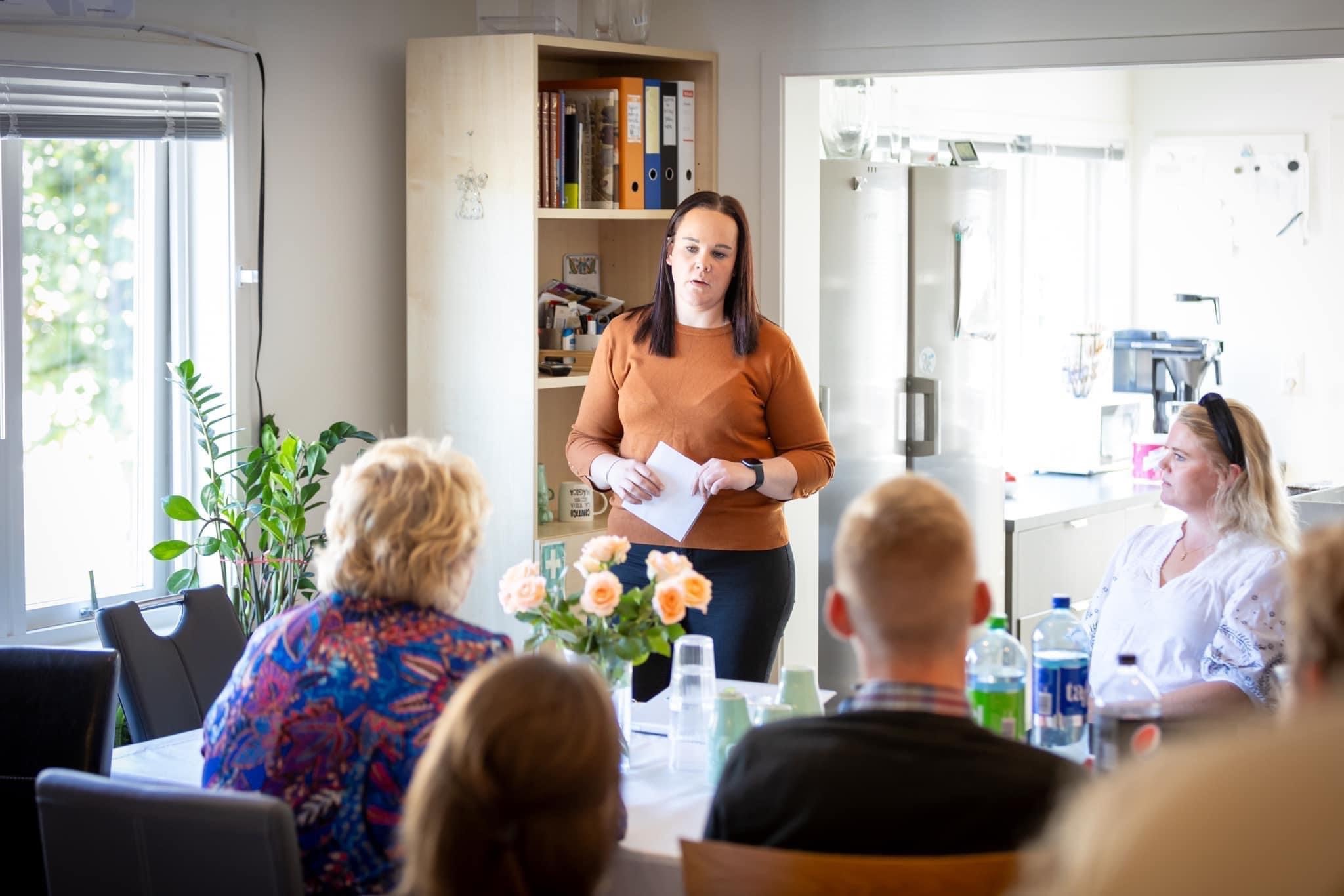 Erna fikk høre historien til Karoline. Hun er erfaringskonsulent ved oppfølgingssenteret, og har erfaring fra rus og barnevern. Karoline fortalte Høyrelederen at hun hadde trengt et tilbud som CRUX Øvre Eiker mye tidligere i livet.