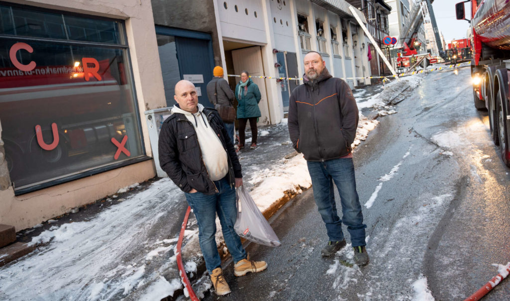 -På det tidspunkt Thomas ankom, var det uoversiktlig og usikkert hvor mye brannen ville spre seg. Han fikk beskjed av brannvesenet om å flytte bilene våre i bakgården for sikkerhets skyld. I tillegg tok han også med seg pc-ene våre for å være på den sikre siden. Vi var i kontakt på telefonen, og senere på natta ringte politiet meg og informerte om situasjonen. Da hadde de fortsatt ikke full kontroll på brannen, så vi var spent på hva som møtte oss på morgenen. Heldigvis slapp vi unna med lettere røykskader i våre lokaler, sier virksomhetsleder Jon Arne Frøyland.